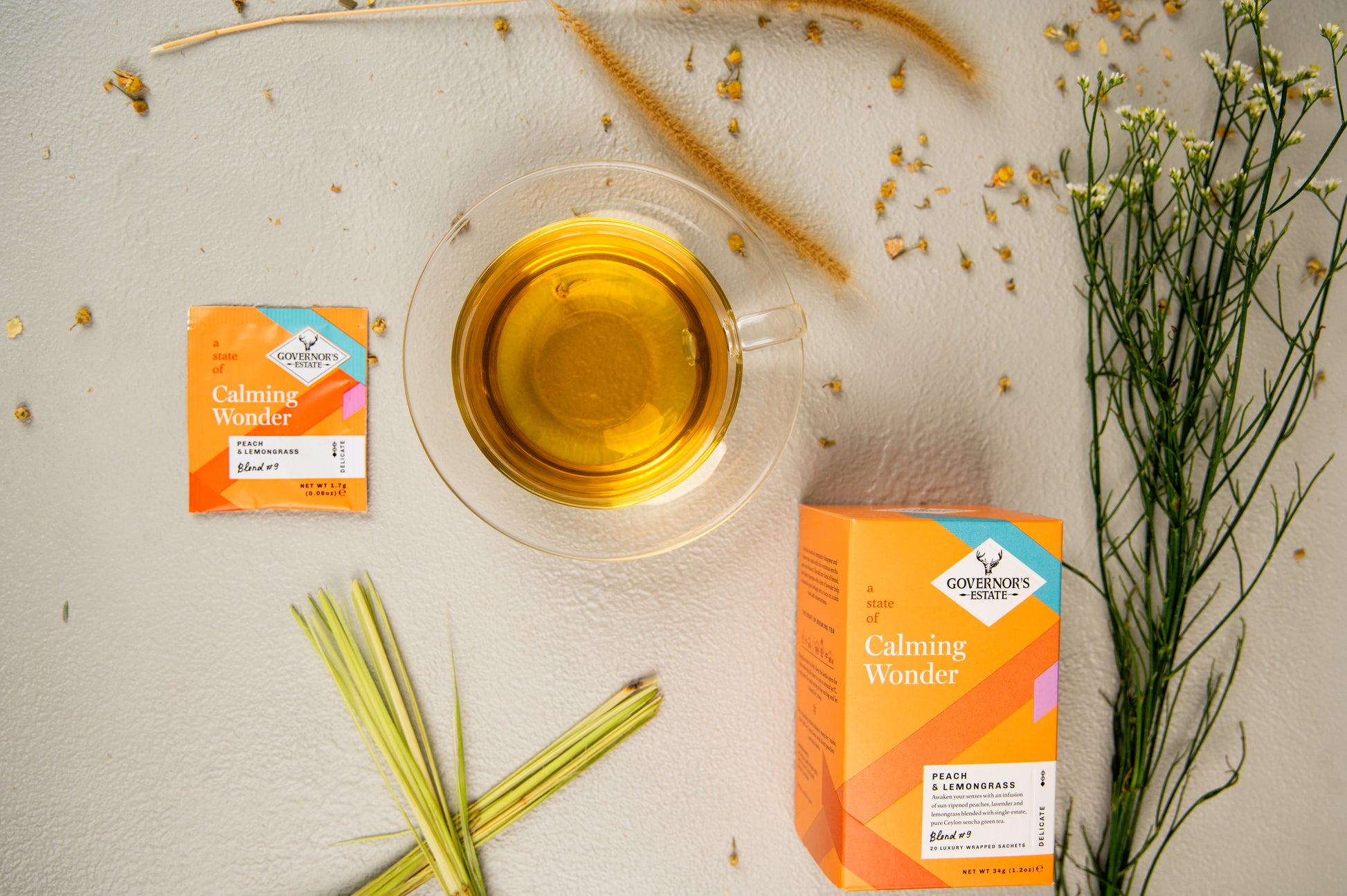 Lemongrass, Peach, Sencha Green tea, Fennel, Licorice, Lavender.